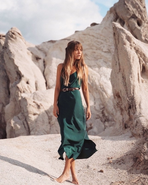 Wear a tee under -or knotted over- your silk slip dress for colder days or just a more causal look. Pair with a leather jacket and loafers or sneakers and you are ready to go anywhere.